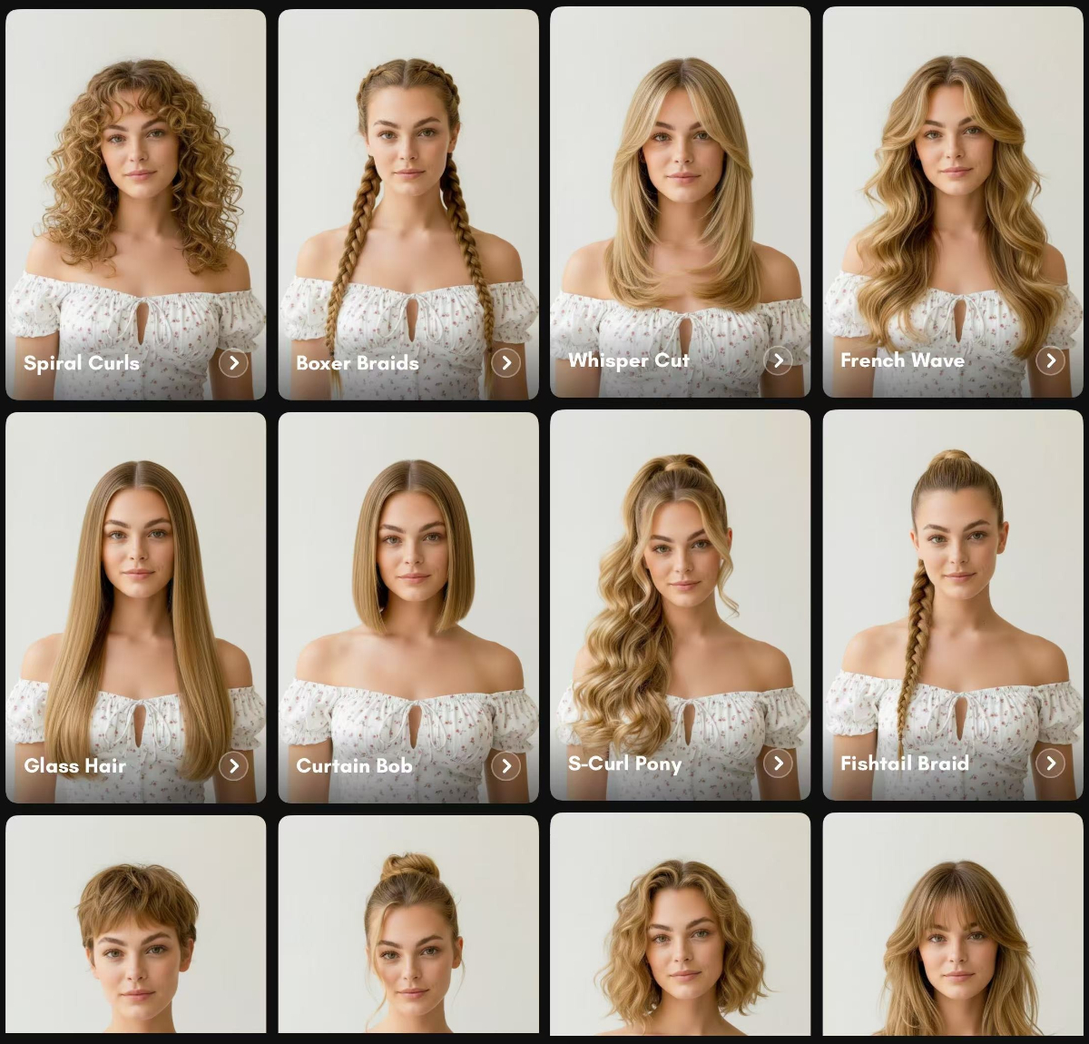 - Choose among different hairstyles digitally.