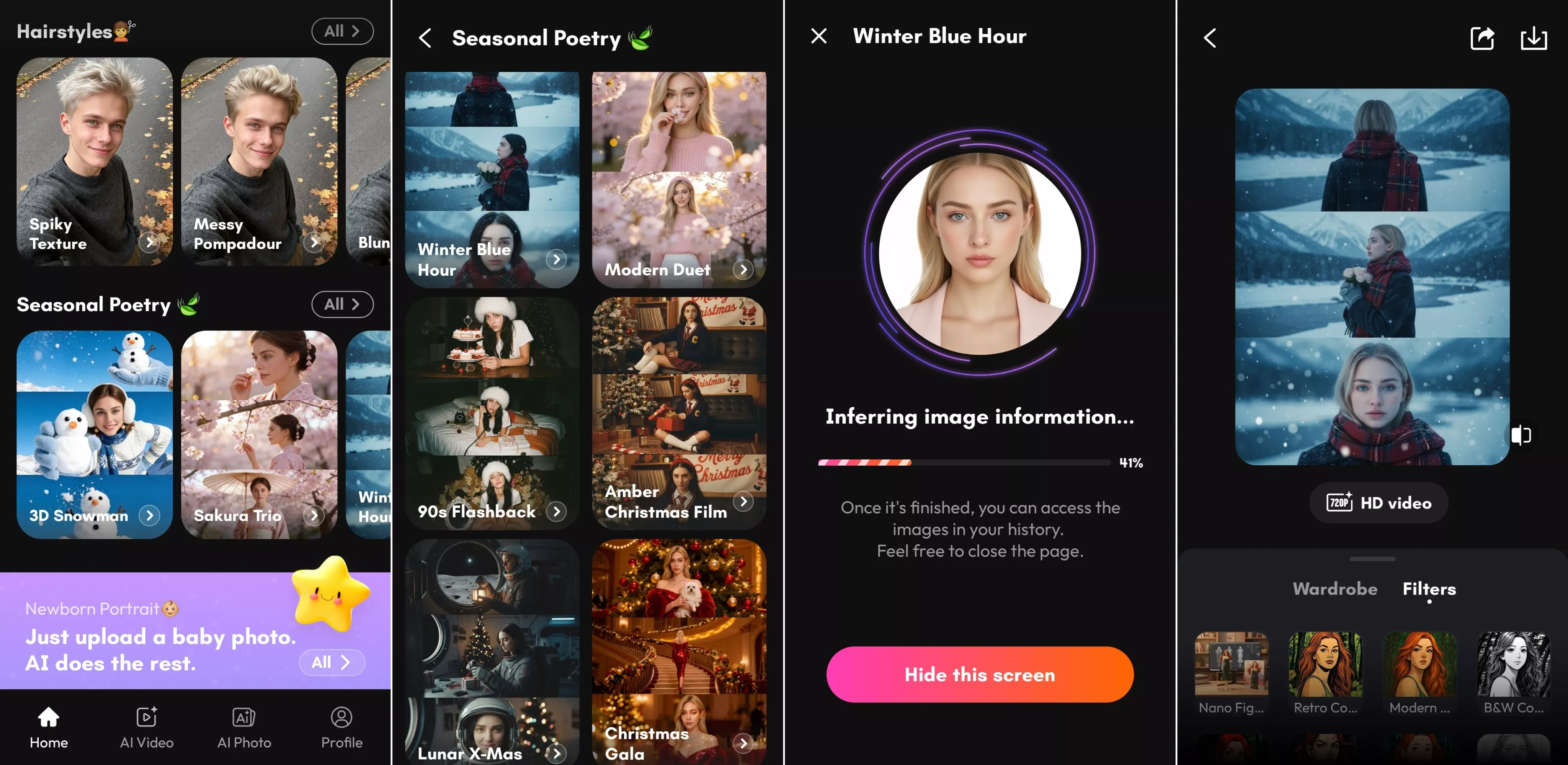 The app will automatically generate your three-panel Seasonal Poetry portrait in just seconds. And if you want to make it even more dynamic, you can even transform the image into a short video version of your story.