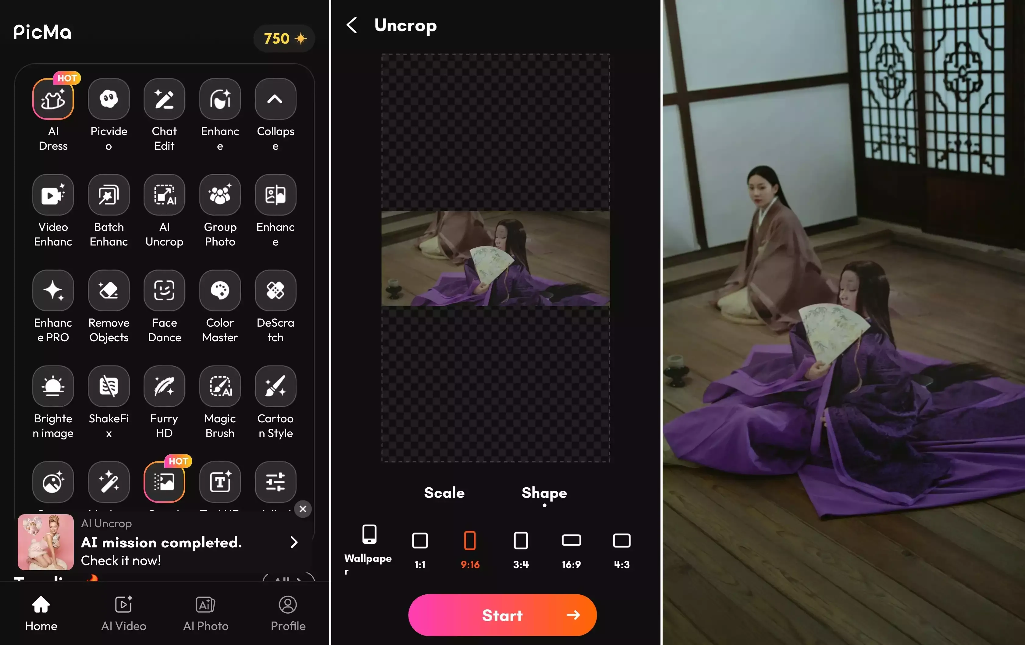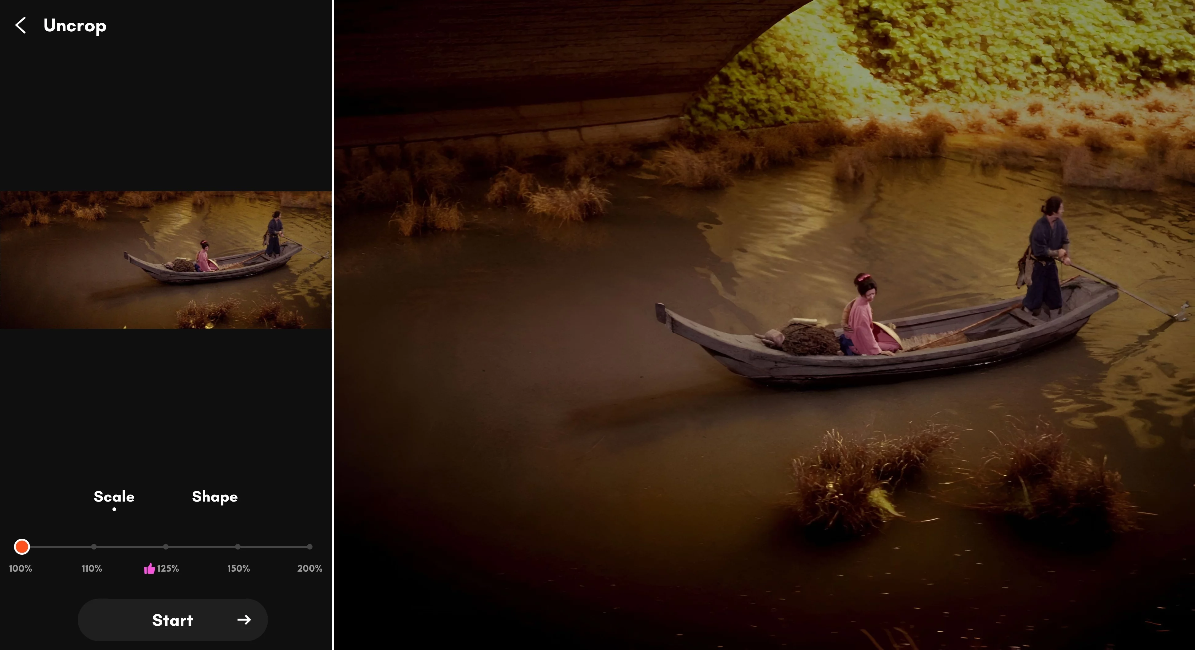 Open the app and tap AI Uncrop.