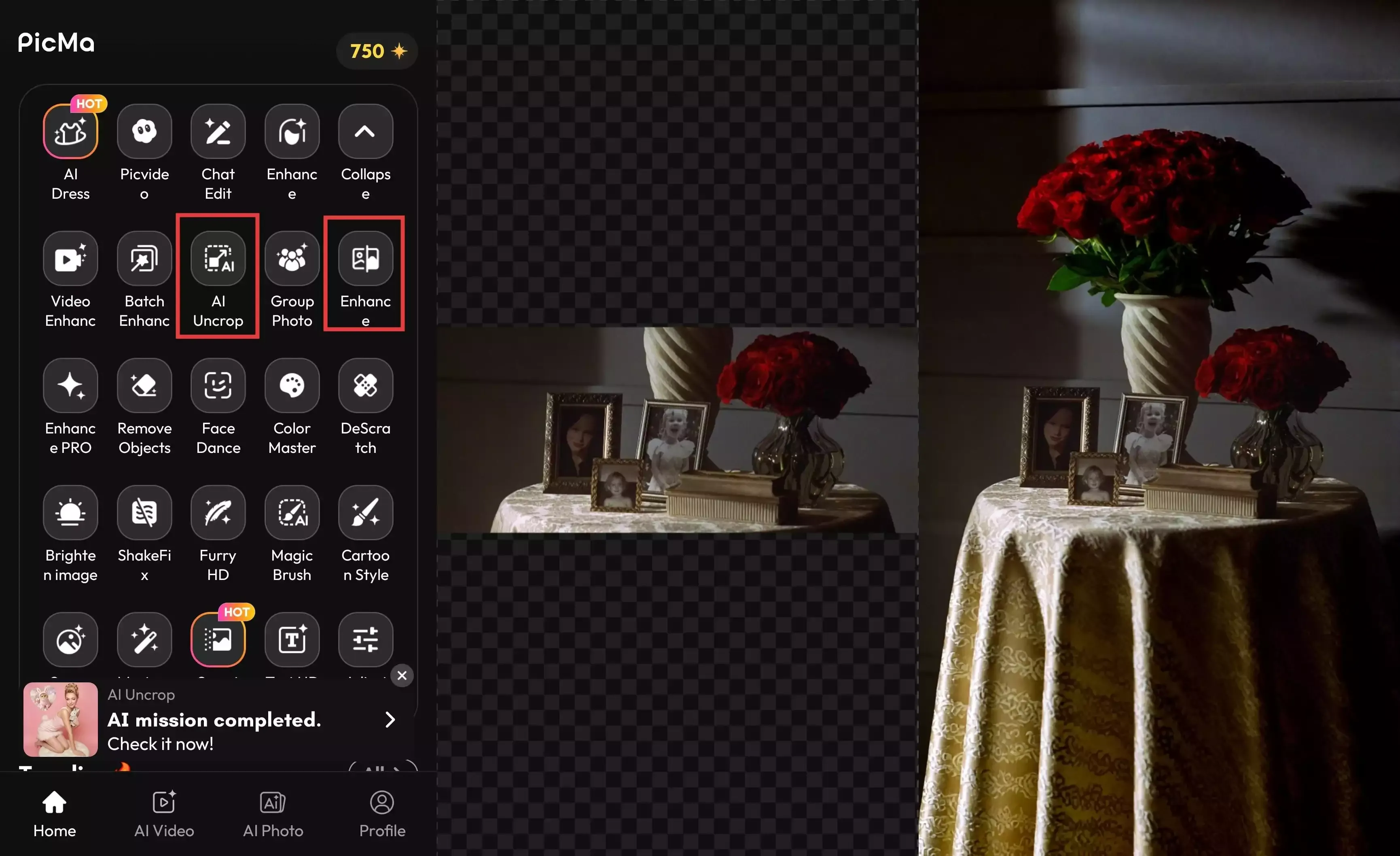 PicMa’s AI Uncrop flips the whole process. It intelligently expands the frame beyond the original boundaries.