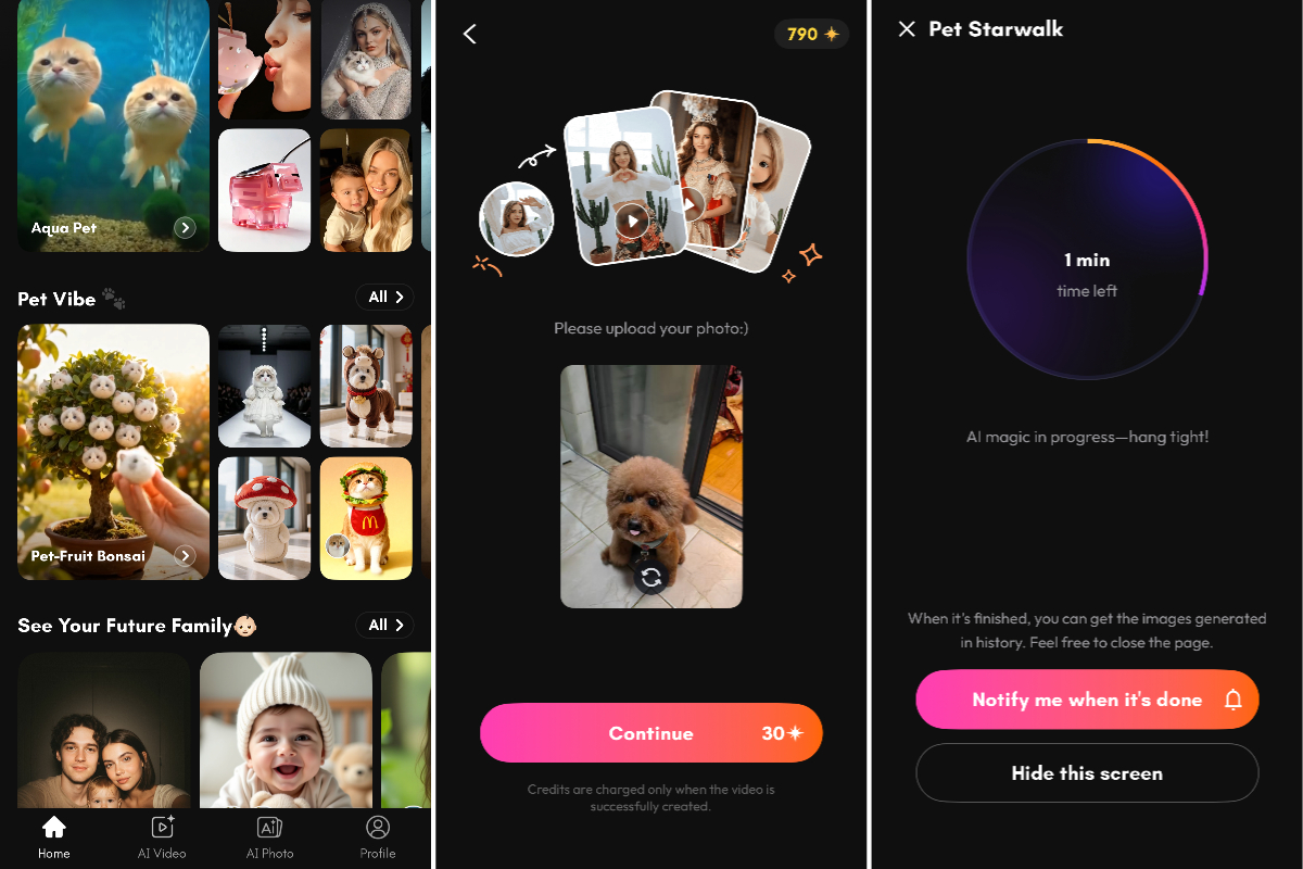 - Open PicMa and find the Pet Starwalk Feature: Open the PicMa app and navigate to the Pet Vibe section where the "Pet Starwalk" template is prominently displayed.