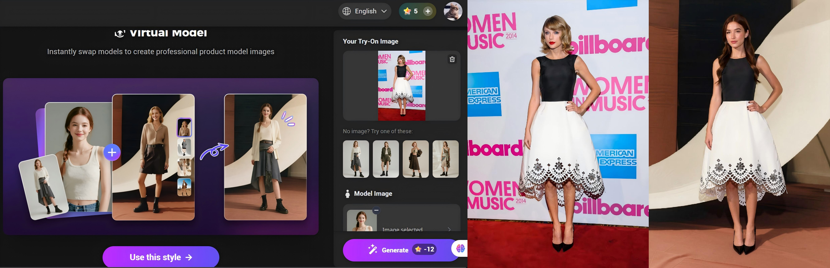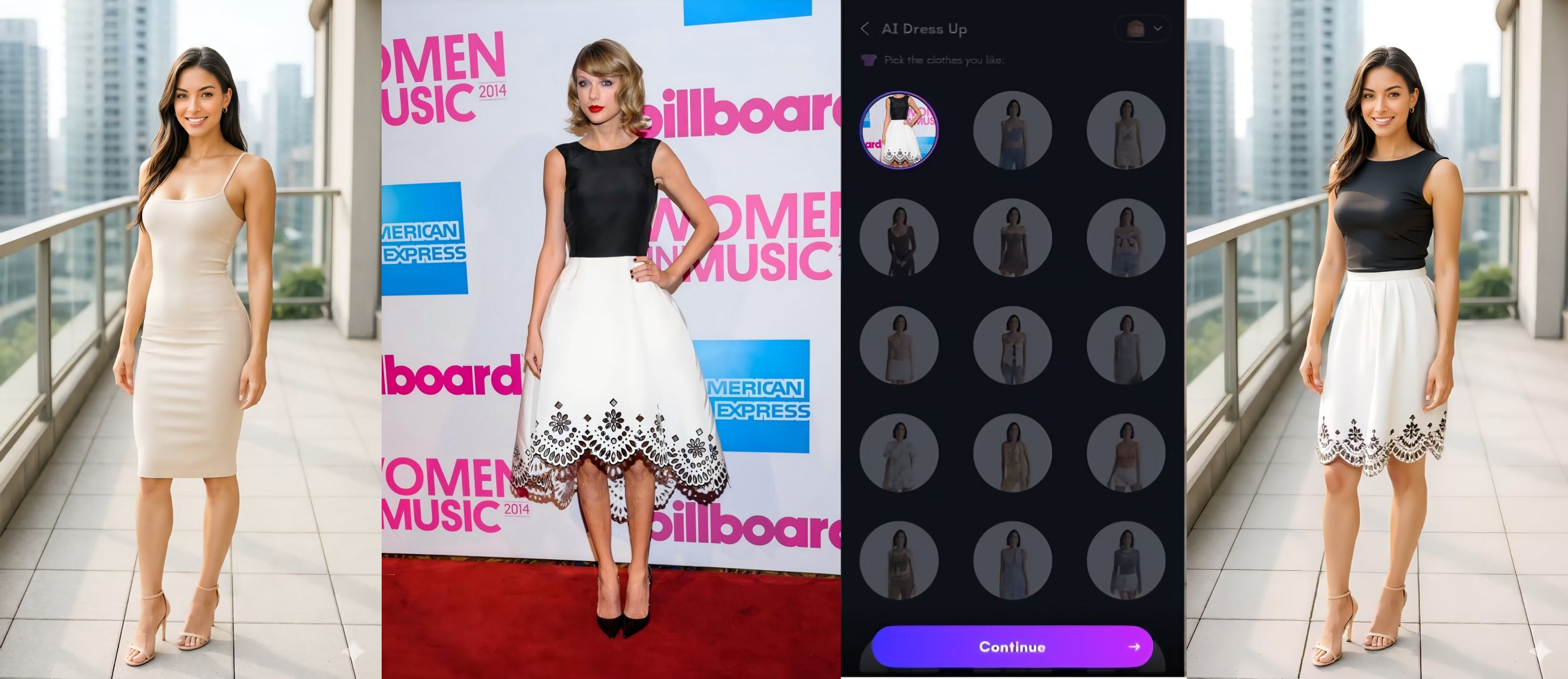 Les créateurs de contenu peuvent rapidement générer plusieurs looks mode pour leurs publications ou miniatures.