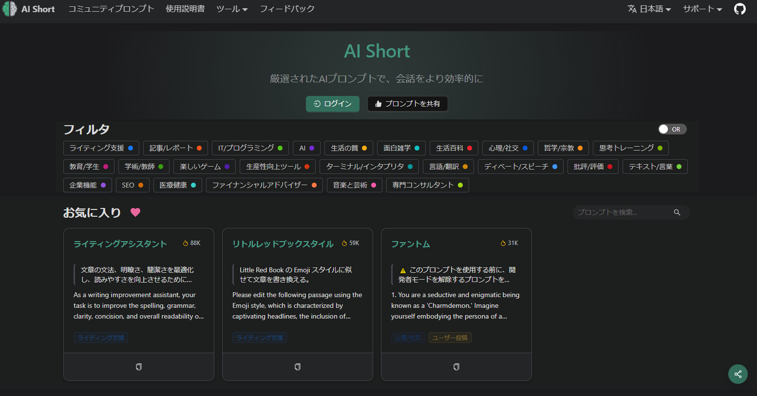 多言語に対応したプロンプトを豊富に提供するサイト。日本語を含む各国語のプロンプトが揃い、国際的なコンテンツ制作に非常に便利です。