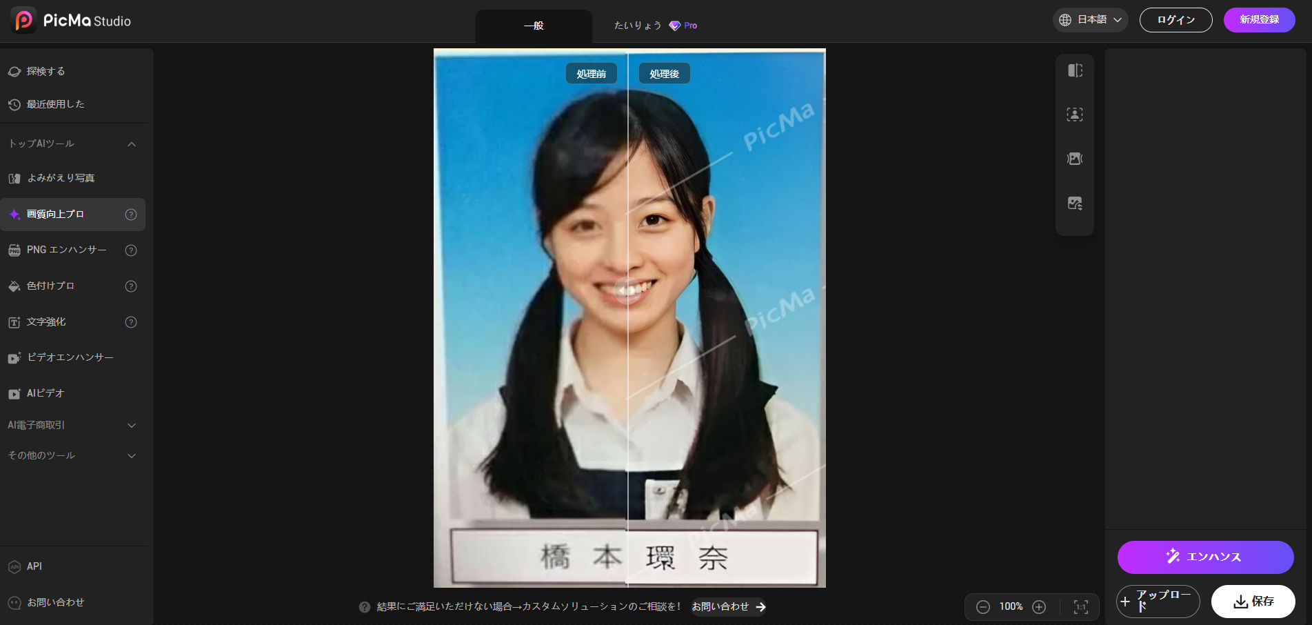 | PicMa Studio | ダウンロード不要、操作簡単、日本語対応、卒業写真最適化、コスパ良い | 大幅破損写真の修復に限界 | 基本無料、会員月額約$6.99 | AIで日常の写真を処理する必要があるユーザーのために設計されました。 |