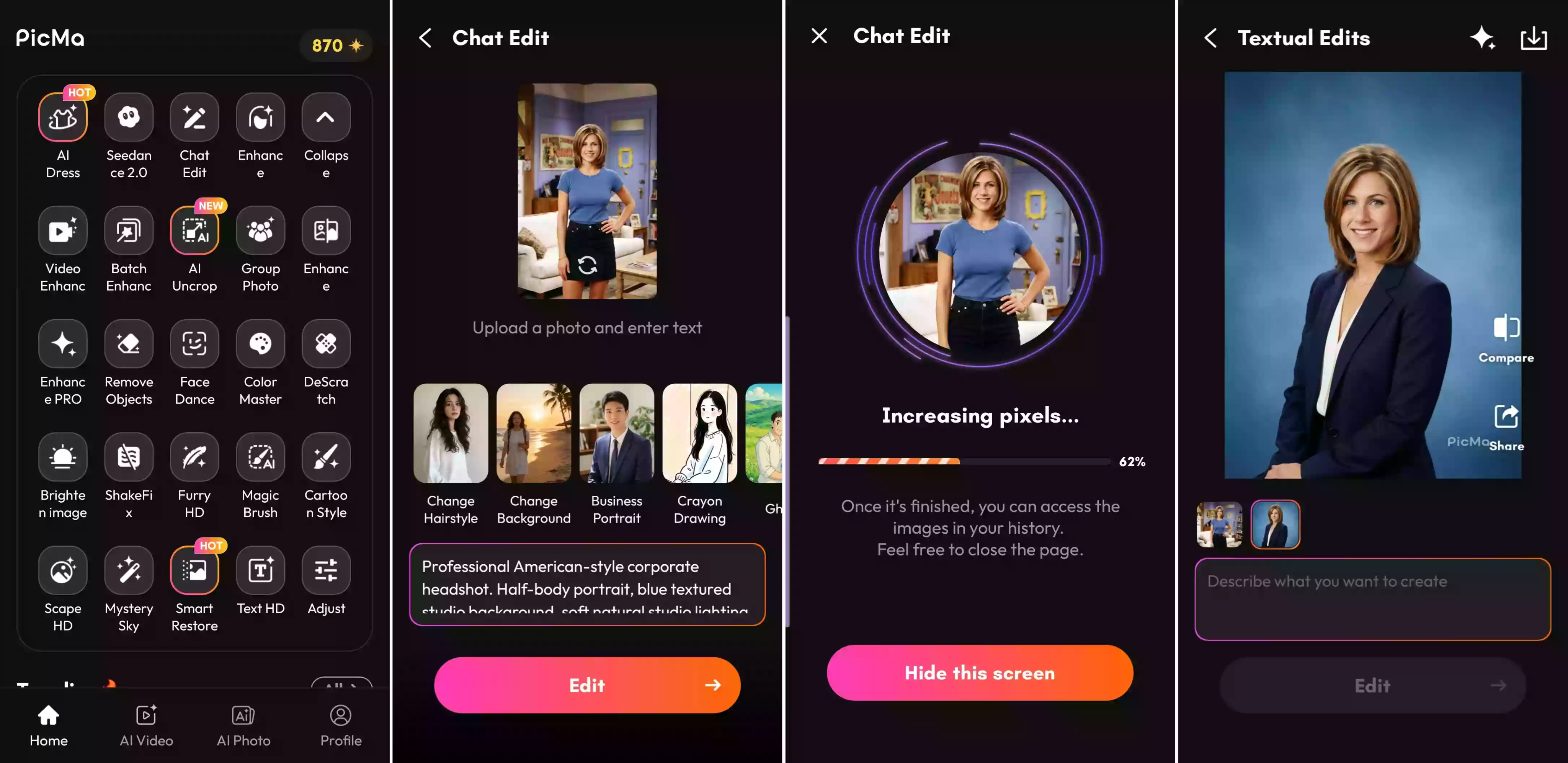 2026年には、もっと簡単な方法があります。PicMaのChat Editを使えば、普通の写真を洗練されたプロフェッショナルなヘッドショットに変えることができます。