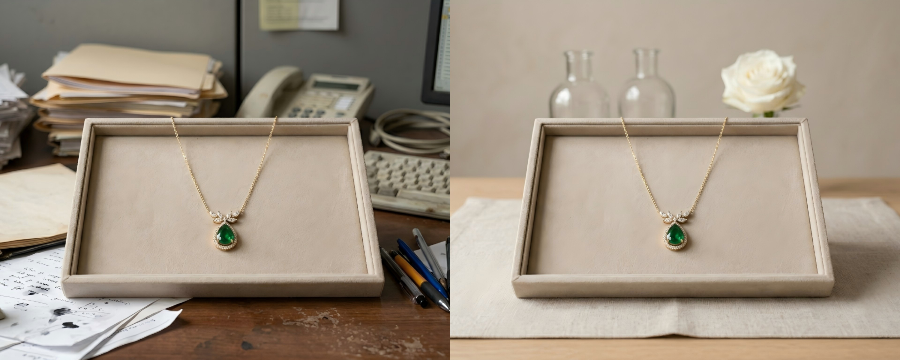 Создание нескольких изображений товара для разных стилей ювелирных изделий традиционно требует профессиональных фотосессий, моделей и студийного оборудования, что для многих продавцов может быть затратно по времени и деньгам.