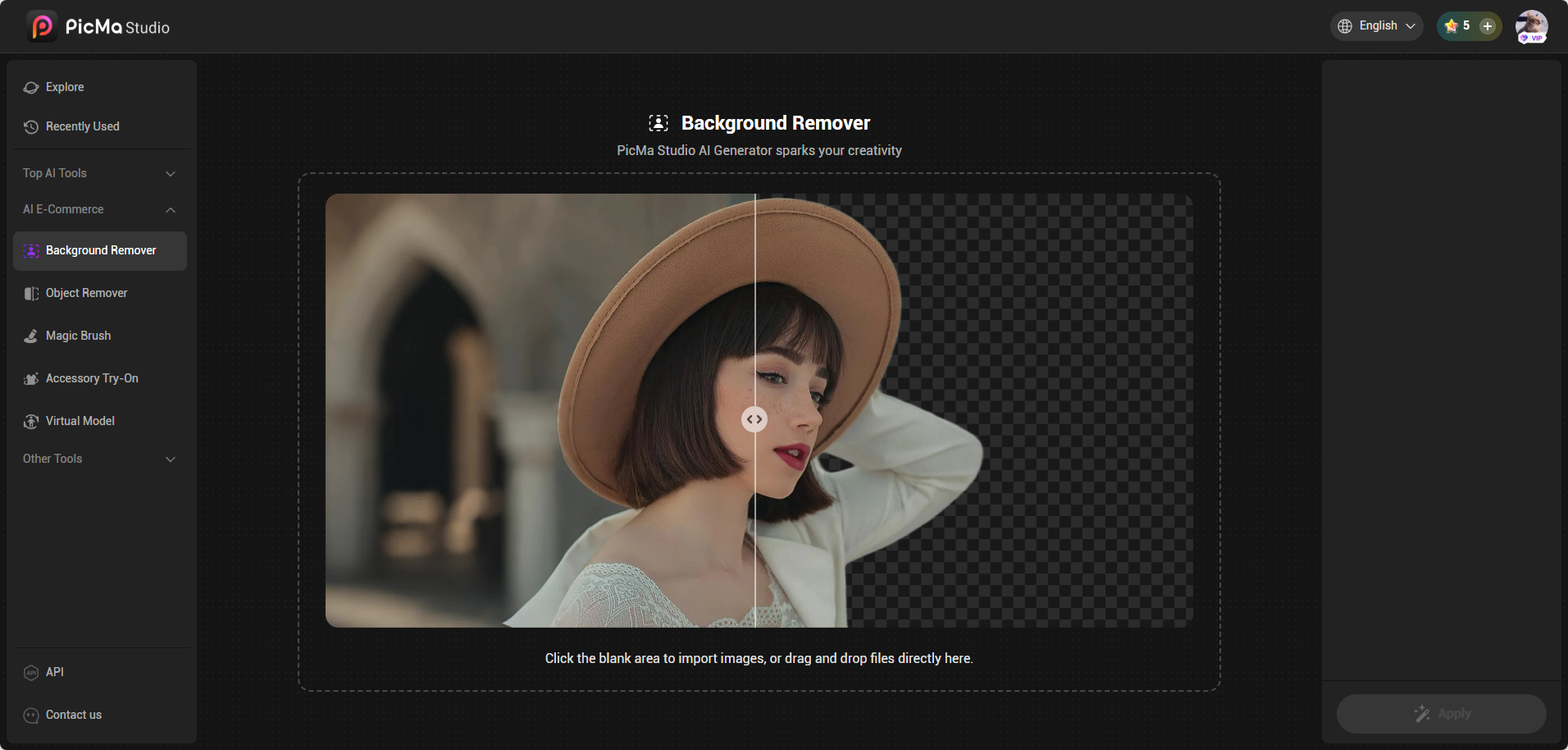 2. Импортируйте чистый вырез в Генератор фона PicMa.