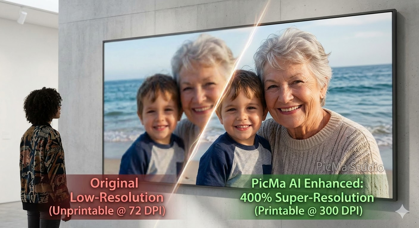 Добро пожаловать в эпоху улучшения фотографий с помощью ИИ. Это руководство покажет вам, как исправить изображения с низким разрешением для крупноформатной печати с помощью PicMa Studio, превратив ваши «непригодные для печати» файлы в готовые для галереи произведения искусства.