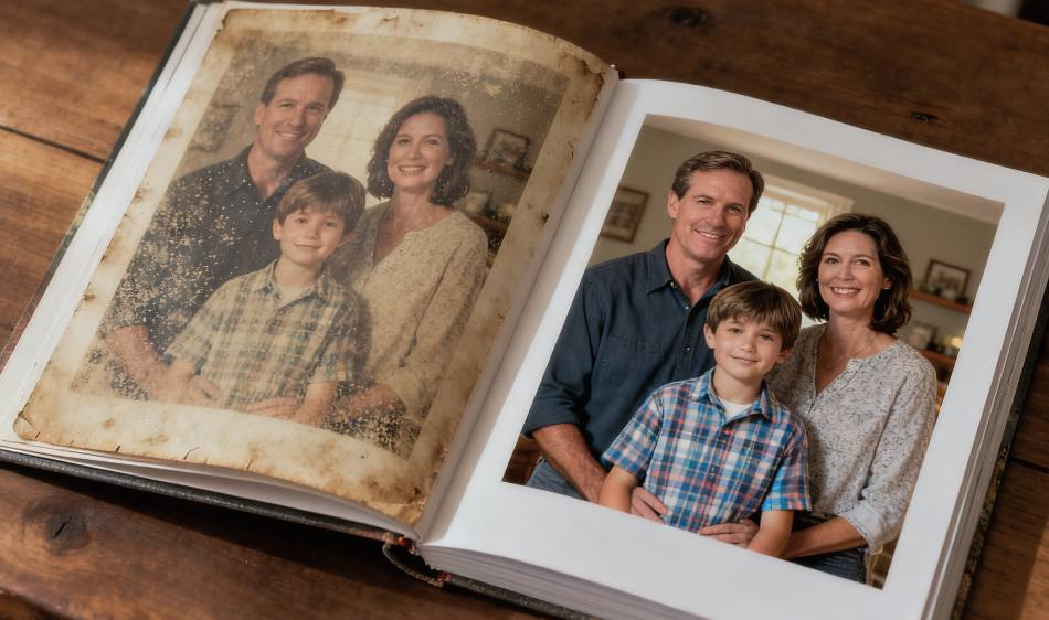 - Умное восстановление: Устраните царапины, разрывы или выцветание, сохраняя эти драгоценные моменты для будущих поколений.