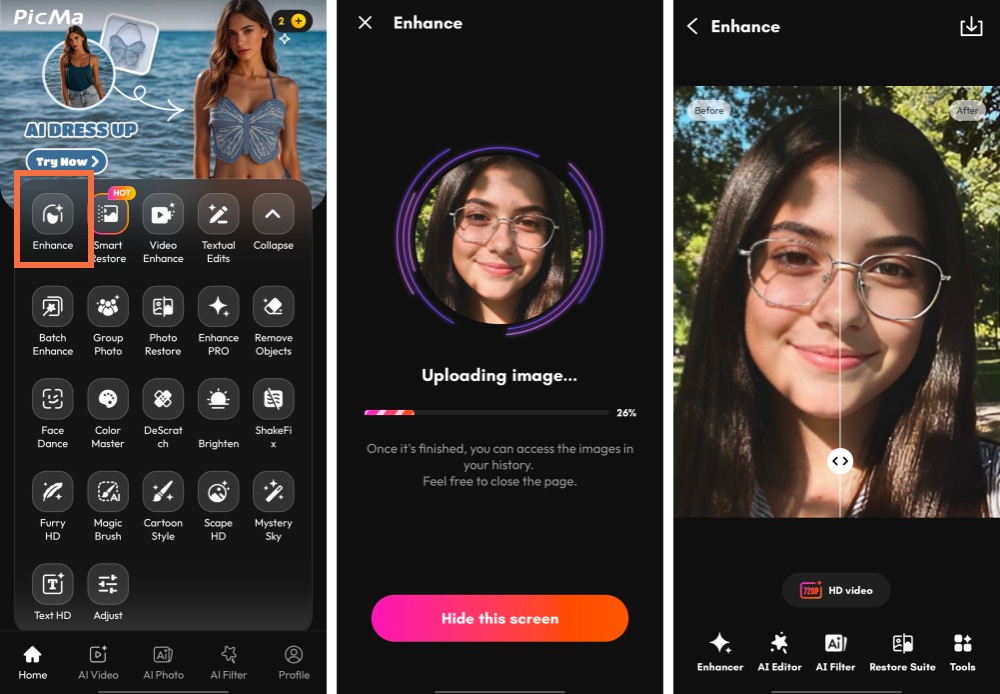 Geleneksel filtreler genellikle tek tip çözümler benimser ve bazen plastik gibi sonuçlar üretebilir. Ancak PicMa'nın Fotoğraf Geliştirici 'si farklı çalışır. Yapay zekamız sadece katı bir şekilde bir efekt uygulamaz; fotoğrafınızın içeriğini tamamen anlar ve sofistike ayarlamalar yapar. Bizden elde edebilecekleriniz: