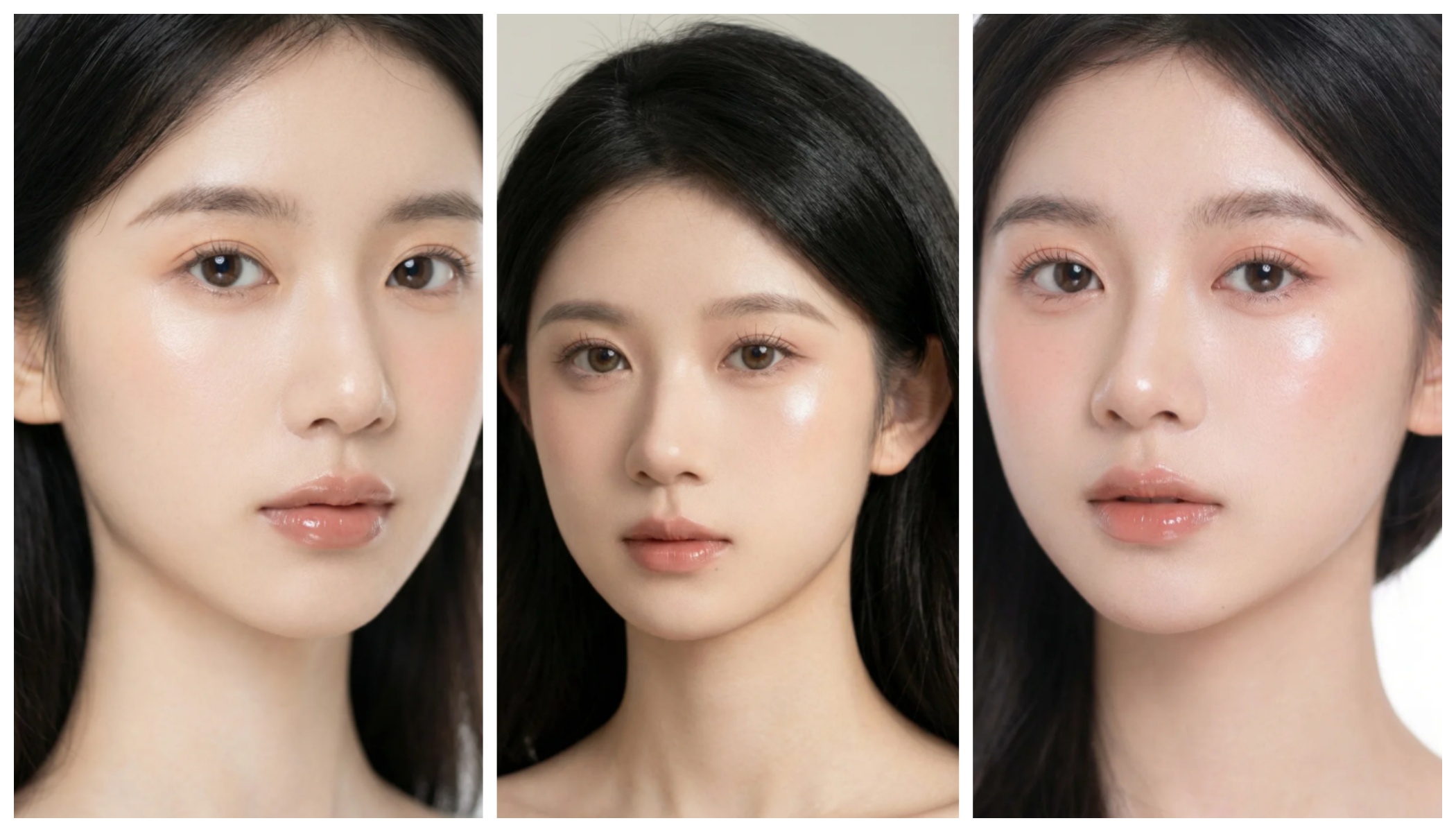 許多使用者雖然會在提示詞中加入「自然妝容」,但生成的結果往往是塗了厚厚粉底的霧面肌,或是與油光難以區分的閃亮肌膚。真正的「白開水妝容」必須具備: