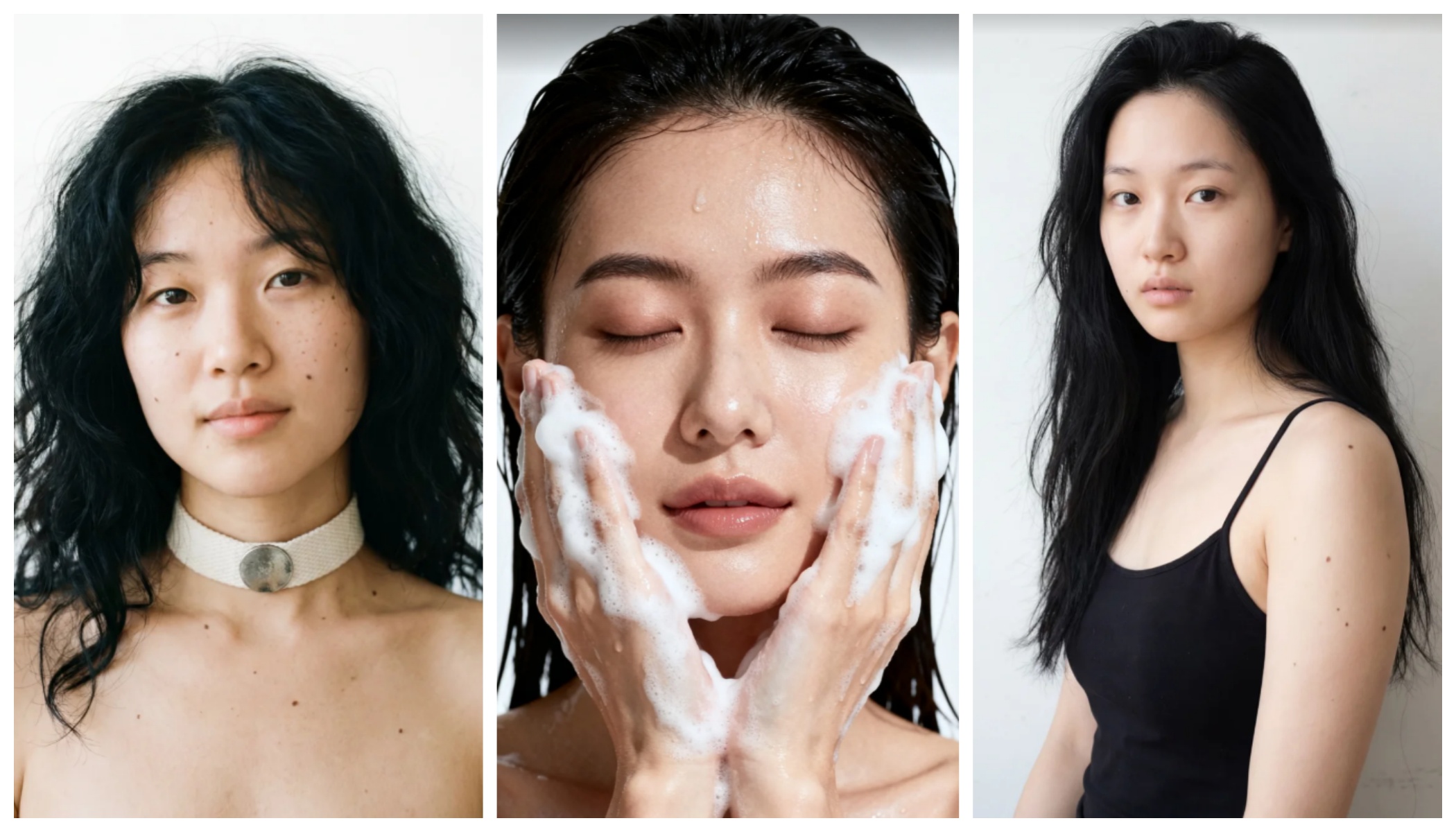 這種營造出「天生美人」感的素顏妝(Clean Girl Aesthetic),目前正以日本的Z世代為中心大為流行。然而,要使用AI圖像生成來重現這種「通透的空靈感」是極其困難的。僅僅指定「美肌」的話,往往會變成不自然的光澤肌或缺乏立體感的平面印象。