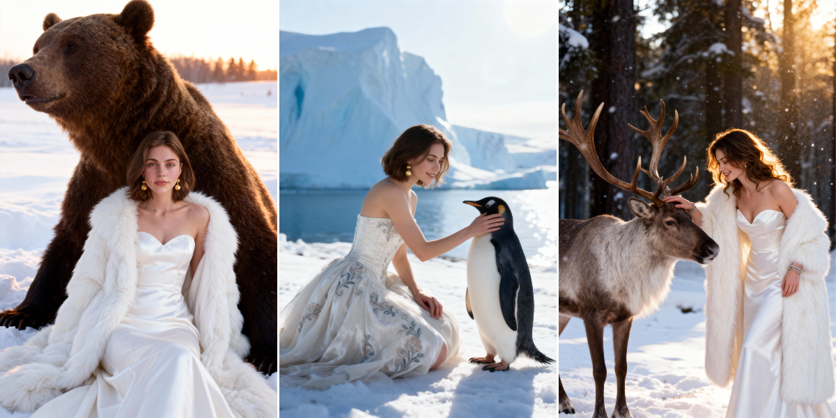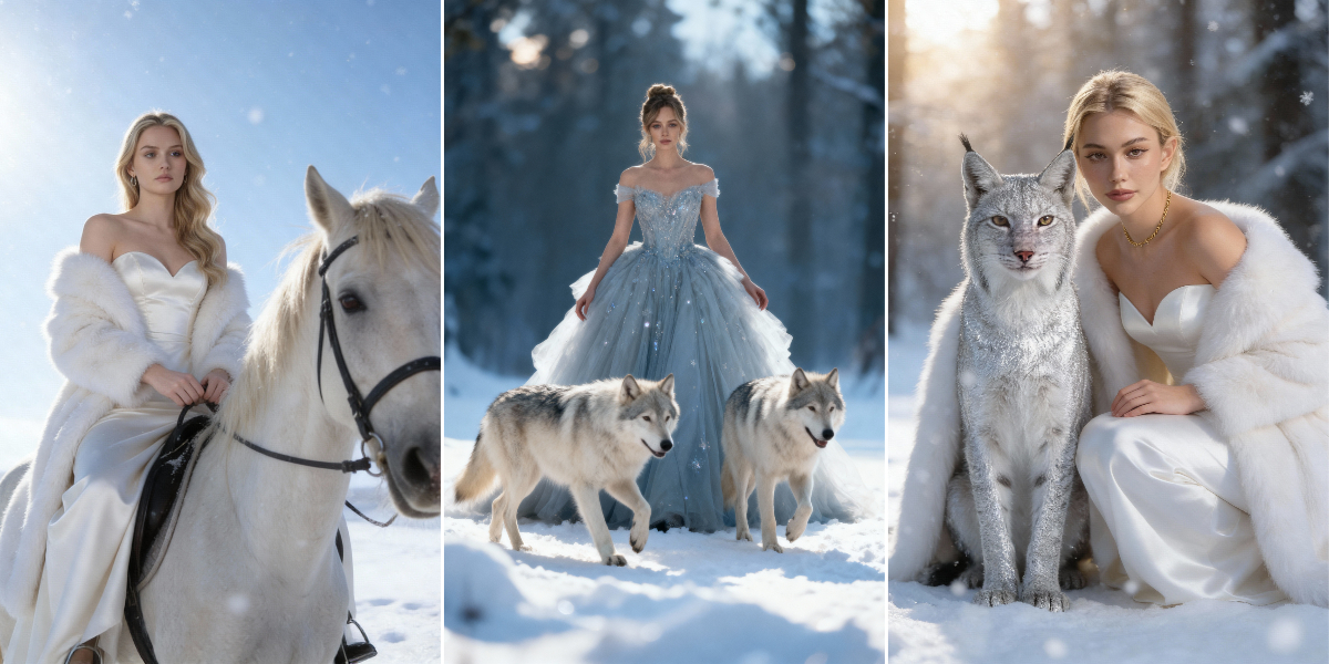 无需预订飞往北极的航班,现在只需轻点一下,就能创作出高端梦幻的冬季动物肖像。无论你想与雄伟的麋鹿、矫健的狼群,甚至神话中的巨龙同框,以下方法能让你足不出户就打造出完美冬季美学大片。